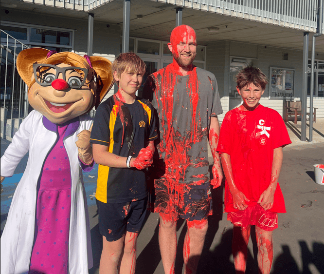 Last year’s Red Nose Day was packed with creativity and fun! At Bee Kids Childcare, kids had a blast throwing water balloons at their teachers, each splash raising funds. Parnell Primary students got to slime their Principal, while Belmont Primary’s Principal even learned a dance and performed it live on TV! Schools also embraced the day by dressing in red, holding bake sales, and playing ‘guess how many Jaffas.